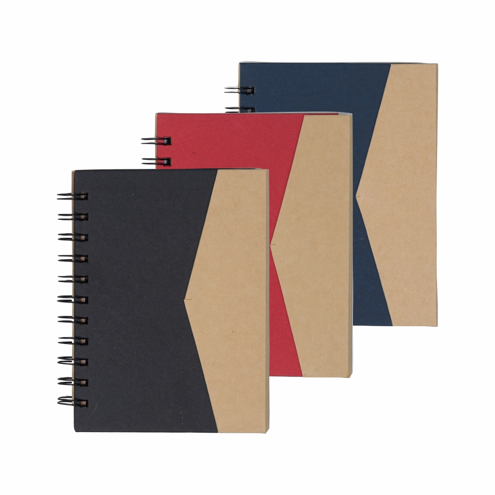 Descrição: Caderno ecológico com autoadesivos e suporte para caneta. Caderneta com capa colorida e abertura lateral imantada, primeira folha com cinco blocos autoadesivos coloridos com aproximadamente 25 folhas e aproximadamente 68 folhas brancas pautadas. Ultima página kraft conta com suporte para caneta.