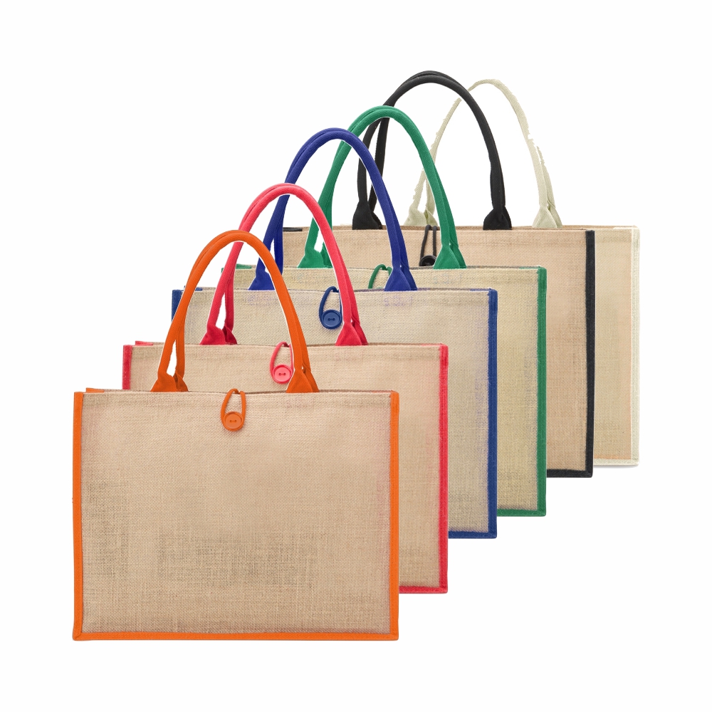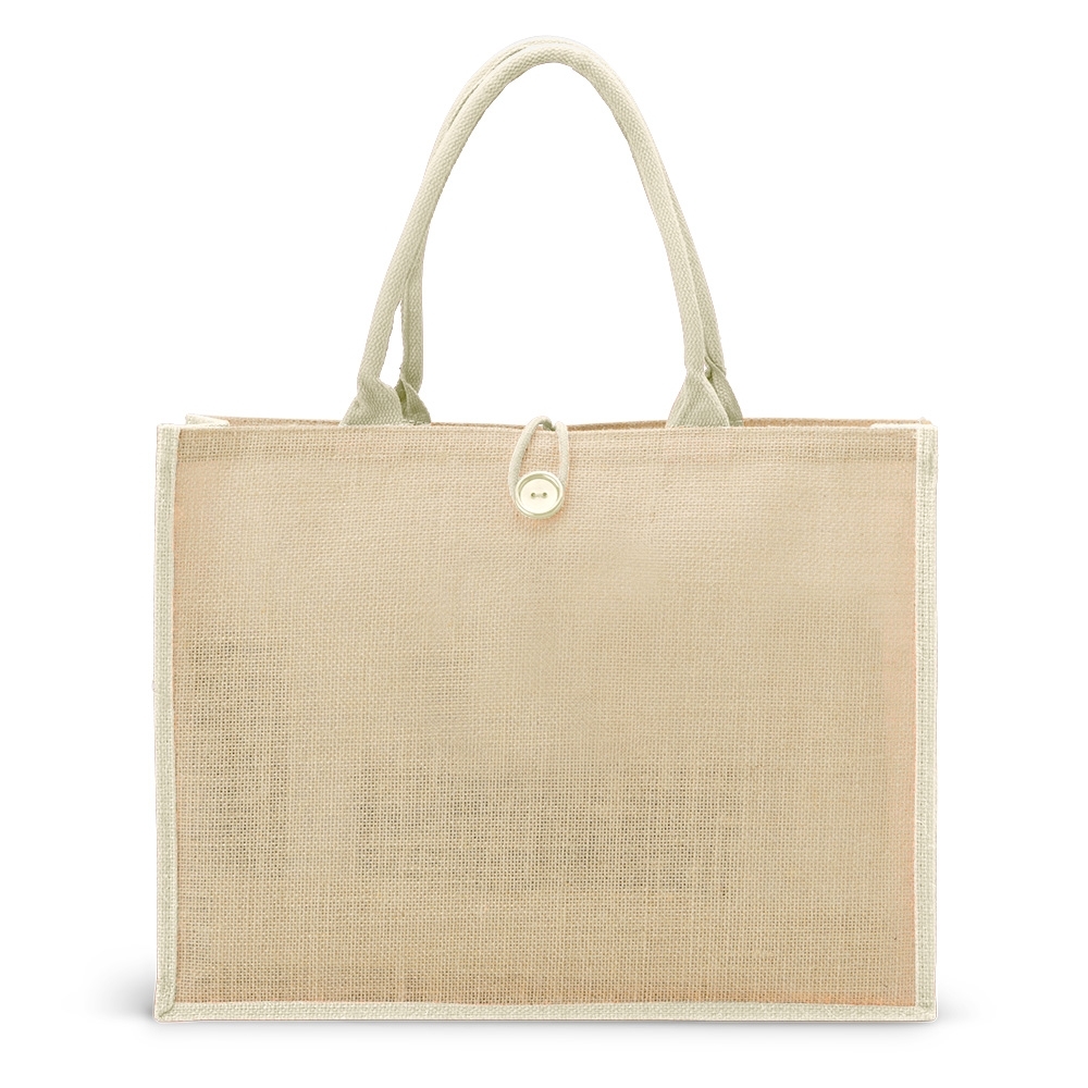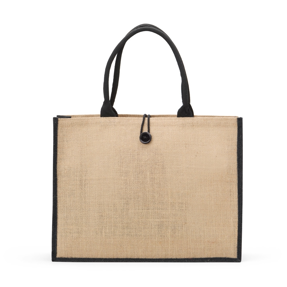 Descrição: Nossa sacola é feita de juta e conta com botão de fechamento, garantindo mais segurança para os itens. Suas alças permitem o uso tanto no ombro quanto na mão, oferecendo uma solução completa para as suas necessidades diárias.